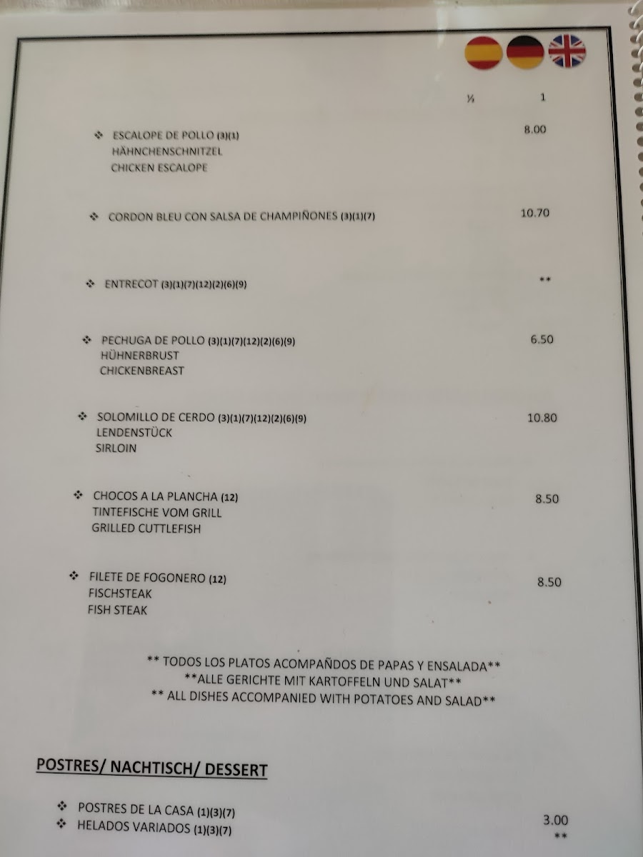 At Restaurante Caney, the menu feels like a confident summary of hearty, traditional cooking, where comfort and generosity guide every plate. Grilled and roasted specialties anchor the experience, with Pollo A la Brasa and Pollo Asado Con 1 Ración de Papas Fritas standing out for their balance of smoky flavor, tender meat, and satisfying portions. Seafood lovers are not overlooked, as Chocos Con Ensalada Mixta offers a lighter yet flavorful contrast, pairing well-prepared cuttlefish with a fresh, straightforward salad. The kitchen’s respect for home-style recipes is especially evident in Croquetas de Pollo Hechas En Casa Con la Receta de la Abuela Exquisitas Con Ensalada Y Papas Fritas, a dish that delivers comfort through crisp textures, creamy filling, and familiar flavors. For those drawn to slow-cooked depth, Carne Con Papas Estofado brings warmth and richness, while pork takes center stage in multiple forms, from the breaded and satisfying Escalope de Cerdo to the deeply savory Codillo de Cerdo and Codillo Al Horno, both highlighting tender meat and robust seasoning. Beef is represented with confidence in Entrecot de Ternera Con Una Guarnición de Papas Panaderas Y Champiñones Salteados, a well-rounded plate that pairs a flavorful cut with classic sides that complement rather than overpower. To finish on a sweet note, Quesillo provides a simple, traditional dessert that rounds out the menu with a smooth and comforting touch. Taken together, the menu reflects a clear focus on honest flavors, familiar recipes, and satisfying combinations, making each highlighted dish feel like a deliberate part of a cohesive, well-rooted culinary identity.